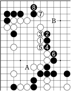 Èæ ?·Î ħÅõÇÑ Àå¸é. ÅõÀÚ¸¦ ¸¹ÀÌ ÇÑ °÷À̹ǷΠ¹éÀº ¡®°¡¡¯¿¡ ¸·°í ½ÍÁö¸¸ Âü°í 1µµ°¡ ¿¹»óµÈ´Ù. 8 ÀÌÈÄ ¹éÀÌ AÀÇ ¾àÁ¡À» Ä¿¹öÇÒ ¶§ Èæ B·Î »óÁß¾Ó ÈæÁýÀÌ ¾öû ºÒ¾î³ª´Â °Í. 94, 95·Î °°ÀÌ µÎÅÍ¿òÀ» ²£Áö¸¸ ±× Ÿ°ÝÀº ¹éÀÌ Á» ´õ Å©´Ù. 99 ¶§ ¹éÀÌ Æ²¾î¸·´Â ¼ö´Üµµ ¸¶¶¥Ä¡ ¾Ê´Ù.