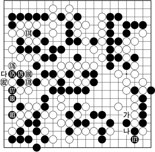 173Àº Á¤¼ö. ¡®°¡¡¯¸¦ ¼±¼ö ´çÇÏÁö ¾Ê°Ú´Ù°í ¡®³ª¡¯·Î ¿å½É³»´Â °ÍÀº ¿ÀÈ÷·Á ¼ÕÇØ´Ù. Âü°í 1µµ 4±îÁö ÁøÇàµÈ µÚ Èæ 5·Î ±¼º¹ÇÒ ¼ö ¹Û¿¡ ¾ø±â ¶§¹®. Èæ 5·Î A¿¡ µû³»¸é ¹é B·Î ÆÐ°¡ ¹ß»ýÇÑ´Ù. 174·Î ¼ÕÀ» µ¹·ÈÀ» ¶§ 175 Á¥ÈûÀÌ ³ë¸®´ø ¼ö·Î, Áö³ º¸(ÜÏ)¿¡¼ »óº¯ ´ë½Å Áº¯ ³¡³»±â¸¦ ÅÃÇÑ ÀÌÀ¯À̱⵵ Çß´Ù.