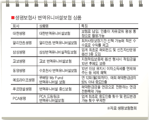 »ýº¸»çµéÀº ¡®º¯¾×À¯´Ï¹ö¼ÈÀû¸³º¸Ç衯°ú ¡®º¯¾×À¯´Ï¹ö¼ÈÁ¾½Åº¸Ç衯 µî µÎ °¡Áö Á¾·ùÀÇ »óǰÀ» ÆÈ°í ÀÖ´Ù.