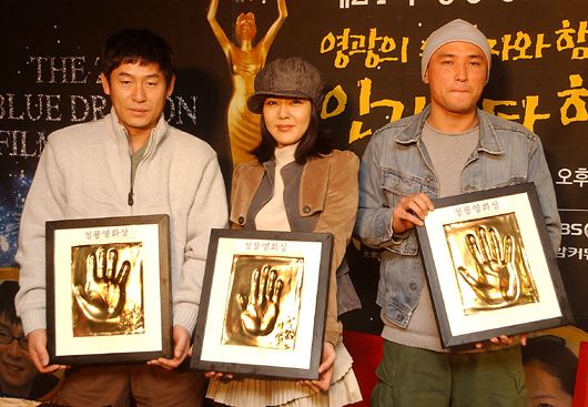 Áö³ÇØ Ã»·æ¿µÈ»óÀ» È·ÁÇÏ°Ô ºû³½ 4ÀÎÀÇ Å齺ŸµéÀÌ ÇÑÀÚ¸®¿¡ ¸ðÀδÙ. 2003³â¿¡ ¿¸° Á¦24ȸ û·æ¿µÈ»ó ³²³àÁÖ¿¬»ó, ³²³à½ÅÀλóÀÇ ÁÖÀΰøÀ̾ú´ø ÃֹνÄ, ÀåÁø¿µ, ¹è¿ëÁØ, ÀÓ¼öÁ¤ÀÌ ÇÚµåÇÁ¸°ÆÃ Çà»ç¸¦ À§ÇØ '¼Õ'°ú '¸¶À½'À» ¸ðÀ¸´Â °Í. À̵éÀº 29ÀÏ ¼¿ï ±¹¸³±ØÀå ÇØ¿À¸§±ØÀå¿¡¼ ¿¸± Á¦25ȸ û·æ¿µÈ»ó ½Ã»ó½Ä¿¡ ¾Õ¼ 19ÀÏ ¿ÀÈÄ 4½Ã ¼¿ï ¿ë»ê±¸ CGV¿ë»ê11¿¡¼ ¿µÈÆÒµéÀÌ ÁöÄѺ¸´Â °¡¿îµ¥ ¼ÕµµÀåÀ» Âï´Â´Ù.