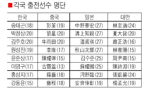 ¿ÃÇØ ¿ª½Ã Çѱ¹ÀÇ °¡Àå °·ÂÇÑ Àû¼ö·Î´Â Áß±¹ÀÌ ²ÅÈù´Ù. ±Ý³â À×¾¾¹è ¹× Ãá¶õ¹è 4°, ³ó½É¹è ´ëÇ¥ µî ÀýÁ¤ÀÇ ±â·®À» »Ë³» ¿Â Æãþ(ø°ï§)ÀÌ ÁÖÀå. ¶Ç ¸®Ä²(ì°Ë¬), õ¾ß¿À¿¹(òçé¥ç§) ±¸¸µÀÌ(ͯçÏìÌ) µî Áß±¹ÀÌ ÁÖ½ÃÇÏ´Â 10´ë ±â´ëÁÖµéÀÌ ¸Á¶óµÆ´Ù. ƯÈ÷ À̹ø ´ëȸ ÃÖ¿¬¼Ò ÃâÀüÀÚÀÎ ±¸¸µÀÌ(13)´Â Áß±¹ ¸®±×¼ 8¿¬½Â °¡µµ¸¦ ´Þ¸®´Â µî ÀÌ¹Ì ½ºÅ¸´ý¿¡ ÁøÀÔÇÑ »óÅÂ.