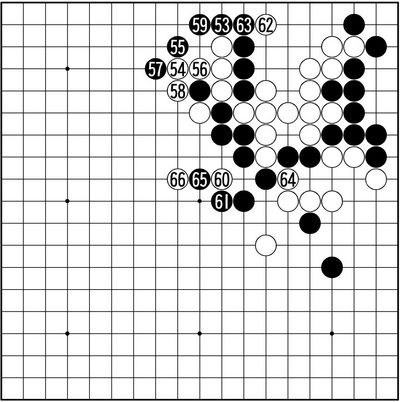 59·Î 64¿¡ ÀÌ¾î ¹öƼ´Â º¯È´Â Âü°í 2µµ. 15±îÁö °ÅÀÇ ¿Ü±æÀ̸ç, ´ÙÀ½ ¹é 16ÀÌ¸é ¡®ºò¡¯ÀÌ´Ù. 16À» ¼Õ »©¸é ÈæÀÌ ¼ö¸¦ ÁÙ¿©°¡ ¹éÀÇ ¼±ÆÐ(à»ø®)°¡ µÈ´Ù. ¹é¿¡°Ô ¼±ÅñÇÀÌ ÀÖ¾î ÈæÀÇ ÀÔÀå¿¡¼± ½ÇÀü 59°¡ ¿Ç¾Ò´Ù´Â °á·Ð. 64·Î ¿ä¼®À» Àâ°í ÀϴܶôµÆ´Ù. 65·Î ¿õÅ©·ÈÀ» ¶§ 66ÀÌ ¸ÚÁø °¨°¢. Áß¿ø¼ ¶Ç ÇѹÙÅÁ °ÝÀüÀÌ ºÒ°¡ÇÇÇØÁ³´Ù.