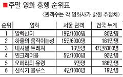 ¡®¾Ë·º»ê´õ¡¯ÀÇ ÈïÇàÀÌ ¿¹¿ÜÀûÀ̶ó ÇØµµ, Çѱ¹ ¿µÈ´Â Å«ÀÏ ³µ´Ù. ½Å³â ¿¬ÈÞ ±â°£ Áß, ÈïÇà 1~5À§¸¦ Â÷ÁöÇÑ °ÍÀº ¸ðµÎ ¿ÜÈ´Ù. ¡®ÇÏ¿ïÀÇ ¿òÁ÷ÀÌ´Â ¼º¡¯(´©°è 161¸¸¸í), ¡®³»¼Å³Î Æ®·¹Á®¡¯(´©°è 47¸¸ 8000¸í), ¡®ÀÎÅ©·¹´õºí¡¯(´©°è 92¸¸¸í), ¡®¿ÀÆä¶óÀÇ À¯·É¡¯(186¸¸¸í)µî ¿ÜȰ¡ ½Ï¾µÀ̸¦ Çß°í, Çѱ¹ ¿µÈ·Î´Â ¡®½Å¼®±â ºí·ç½º¡¯°¡ ¼¿ï¼ 4¸¸¸í, Áö¹æ¼ 15¸¸¸íÀ» ¸ðÀ¸¸ç 6À§¸¦ ±â·ÏÇÏ´Â µ¥ ±×ÃÆ´Ù.