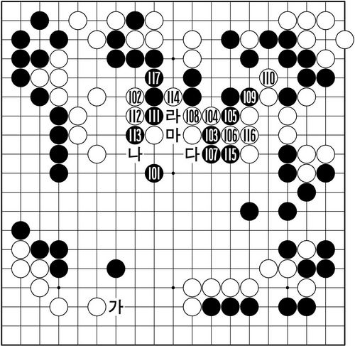 ¡´Á¦8º¸¡µ(101~117)=°¡º¿î ÀìÀÌ °·ÂÇÑ Ä«¿îÅÍ ºí·Î¸¦ ºÎ¸£°í, ±×°ÍÀÌ ´ëÆÇ ½Î¿òÀ¸·Î±îÁö ¹ßÀüÇÏ´Â °æ¿ì´Â ¹ÙµÏ¿¡¼µµ ¸¹´Ù. Áö±Ý ÈæÀº ¡®°¡¡¯¿¡ ºÙ¿© ÇϺ¯ ÆÄ±«¸¦ ¼µÑ·¯¾ß ÇÒ Àå¸é. Âü°í 1µµ 6±îÁöÀÇ ÁøÇàÀÌ ¿¹»óµÇ´Âµ¥, ÀÌ °æ¿ì ½ÇÀüº¸ 101°ú ¹é ¡®³ª¡¯°¡ ±³È¯µÅ ÀÖÀ¸¸é ¹«Á¶°Ç µæÀ̶õ °Ô 101ÀÇ ¶æÀ̾ú´Ù.