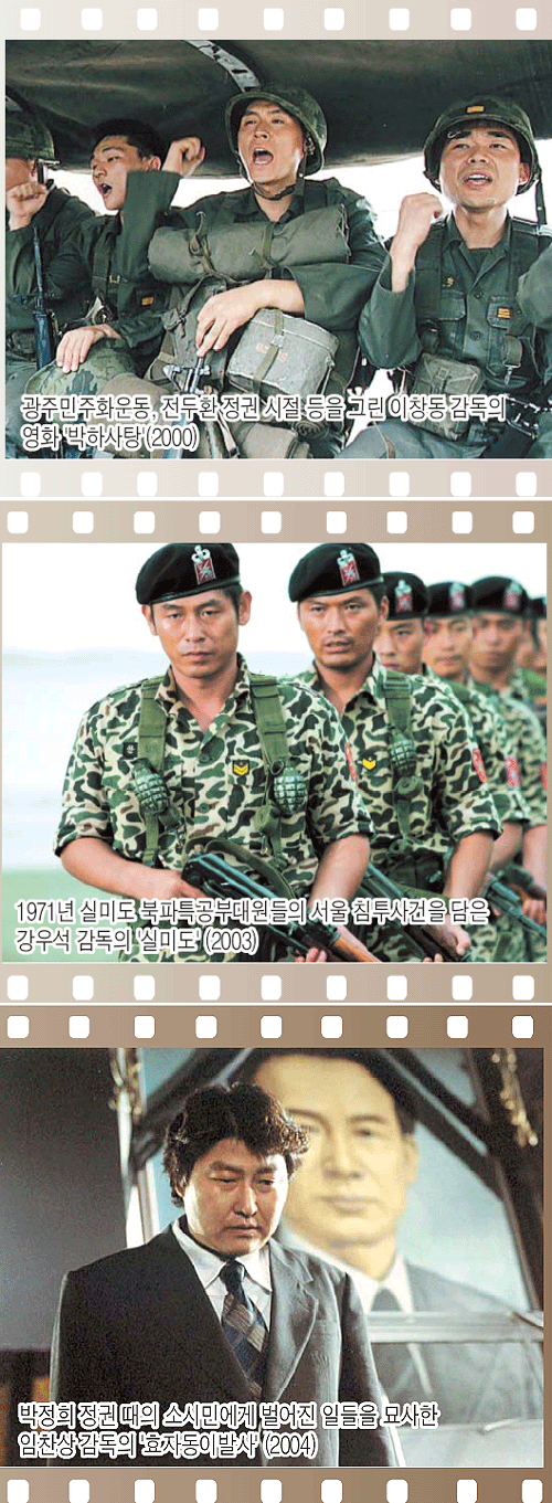70³â´ë ºÏÆÄ°øÀÛ¿øÀÇ ½Çü¸¦ ´Ù·é ¡®½Ç¹Ìµµ¡¯, ¹ÚÁ¤Èñ Àü ´ëÅë·ÉÀÇ À̹߻縦 ¼ÒÀç·Î ÇÑ ¡®È¿ÀÚµ¿ À̹߻硯¿¡ À̾î, °ð ¡®±×¶§ ±× »ç¶÷µé¡¯ÀÌ °³ºÀÇÏ¸é¼ ¿µÈ¸¦ ÅëÇÑ ¡®¹ÚÁ¤Èñ½Ã´ë ´Ù½Ã º¸±â¡¯´Â ÀýÁ¤¿¡ ´ÞÇÑ ´À³¦ÀÌ´Ù. 80³â´ë ÀïÁ¡¿¡ °üÇÑ ¿µÈµµ ÀÕµû¶ó ±âȹµÇ°í ÀÖ´Ù. µÎ ½Ã´ë¿¡ Á¤Ä¡Àû »Ñ¸®¸¦ µÐ Çѳª¶ó´ç, ±× »ó´ë¹æÀÎ ¿¸°¿ì¸®´çÀÌ ¸ðµÎ Ã˰¢À» °ïµÎ¼¼¿ï ¼ö ¹Û¿¡ ¾ø´Â »óȲÀÌ´Ù.
