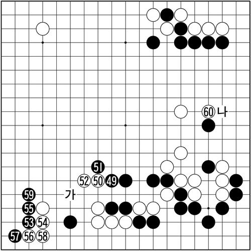 49·Î´Â ¡®°¡¡¯·Î ¶Ù´Â °Ô Àϰ¨(ìéÊï). Âü°í 1µµÃ³·³ Àü¸éÀüÀÌ µÇ¸é ÁÂÇÏ±Í ¹éÀº ÀúÀý·Î Ä¿Áú °ø»êÀÌ ³ô´Ù. µû¶ó¼ ½ÇÀü 51±îÁö Áß¾ÓÀ» Á¦¾ÐÇÏ°í ´Ù½Ã 53À¸·Î ±Í¸¦ ÆÇ Àü·«Àº ²Ï ±×·²µíÇß´Ù´Â Áß·Ð. ¹éµµ 56À¸·Î ¾Æ·¡ ÂÊ¿¡¼ Á¥Çô°£ ¼ö°¡ ÁÁ¾Ò´Ù. ½À°ü´ë·Î Âü°í 2µµÃ³·³ µÎ´Â °ÍÀº ¹éÀÌ ³Ê¹« Áߺ¹(ñìÜÜ)µÈ ¸ð½À.