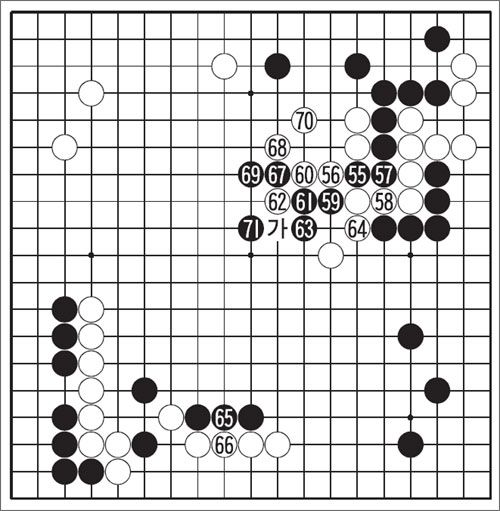 55·Î´Â Âü°íµµ 1, 3À¸·Î ¾Æ·§ ÂÊÀ» Á¤ºñÇÑ µÚ 5, 7·Î ²÷¾î°¡´Â ¹æ¹ýµµ ÀÖ¾ú´Ù. 11±îÁö ÀüÇô ´Ù¸¥ ÇÑ ÆÇ. 55¸é ½ÇÀüº¸ 64±îÁö´Â ¿Ü±æÀÌ´Ù. ÈæÀº ¿©±â¼ ¡®°¡¡¯¿¡¼ºÎÅÍ Á×Á× ¹Ð¾î°¡´Â ¼ö¿Í 67·Î ²÷¾î°¡´Â µÎ °¥·¡ ±æ¿¡ ¼¹´Ù. 65·Î ÇÑ Â÷·Ê È£ÈíÀ» °¡´ÙµëÀº À§ºóÀÇ ¼±ÅÃÀº 67ÀÇ ²÷À½. ¾ÈÇü(äÑû¡) ¸¶·Ã¿¡ ÁÖ¾ÈÁ¡À» µÐ ¼ö´Ù.
