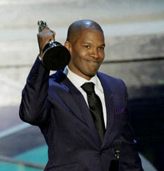 27ÀÏ LA¿¡¼ ¿¸° Á¦ 77ȸ ¾ÆÄ«µ¥¹Ì ½Ã»ó½Ä¿¡¼ ¿µÈ "·¹ÀÌ"·Î ³²¿ìÁÖ¿¬»ó ¼ö»óÇÑ ¿µÈ¹è¿ì Á¦ÀÌ¹Ì Æø½º°¡ ¼ö»ó¼Ò°¨À» ¹àÈ÷°í ÀÖ´Ù. /AP¿¬ÇÕ