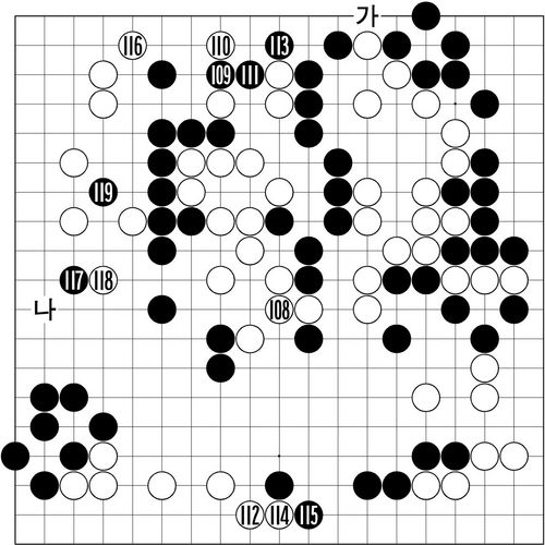 ¡´Á¦10º¸¡µ(108~119)=¹ÙµÏ ½ÂºÎµµ ¼ºÎ Ä«¿ìº¸À̵éÀÇ ÃÑ ½Î¿ò ºñ½ÁÇÏ´Ù. Âû³ªÀÇ ¹æ½ÉÀ¸·Î ¸ñ¼ûÀÌ ¿Ô´Ù°¬´Ù ÇÑ´Ù´Â ¶æ. 108Àº ÀÏ´Ü Ä§ÂøÇß´Ù. Áï°¢ ¡®°¡¡¯ÀÇ Â÷´ÜÀº Èæµµ Âü°í 1µµ 8·Î ÆÐ¸¦ °áÇàÇϸç A ÂÊ¿¡ ÆÖ°¨ÀÌ ¸¹´Ù. °Ô´Ù°¡ ¹éÀÌ ÆÐ¿¡ Áö¸é Èæ B·Î ¿ÀÈ÷·Á ¿À¸¥ ÂÊ ¹éÀÌ ÀâÈù´Ù. ¹®Á¦´Â 109·Î ºÙ¿©¿ÔÀ» ¶§¿´´Ù. ¹é 113À» ±â´Ù·Á ¡®°¡¡¯·Î ³Ñ°Ú´Ù´Â ¶æÀÇ °¡º¿î ÀìÀÌ´Ù.