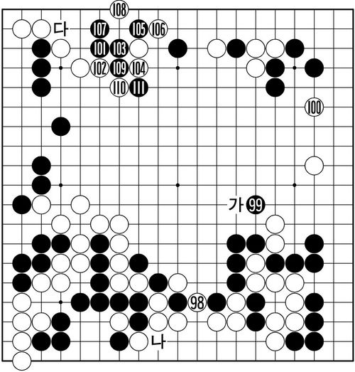 98·Î ¡®°¡¡¯´Â Âü°í 1µµÀÇ ¼ö¼øÀ¸·Î ¹éÀÌ ¸ÁÇÑ´Ù. 98·Î ¼ÕÇØ¸¦ ÁÙÀÌ°Ú´Ù°í ¡®³ª¡¯·Î ÀÌÀ¸¸é Âü°í 2µµ 8 ´ÙÀ½ A¿Í B°¡ ¸Âº¸±â. ¼ö¼ø Áß 5·Î 6Àº Èæ 5·Î ¸Ô¿©ÃÄ ¹éÀÇ ¼ö ºÎÁ·ÀÌ´Ù. 99·Î Áß¿øÀÇ ÁÖÀÎÀÌ ¹Ù²î°í 100ÀÌ ºÒ°¡ÇÇÇØ¼± Çdzª°Ô ´çÇÑ °á°úÀε¥, ±â ¸·È÷°Ôµµ Çü¼¼´Â ¾ÆÁ÷µµ ¹éÀÌ ¾à°£ ÁÁ´Ù. 101Àº Á» ¹«¸®¼ö °°À¸³ª ÀÌ °÷¿¡¼ ¶Ç Çѹø ¹¦¼ö°¡ ¹éÃâÇÏ¸ç »óº¯ ÀÏ´ë°¡ ÇØÀÏ(úìî)¿¡ ÈÛ½ÎÀÌ°Ô µÈ´Ù. 107·Î ¡®´Ù¡¯ÀÇ Àý´ÜÀ» º¸¸ç 109, 111·Î µÇ²÷¾î »ì¾óÀ½ ÆÇ À§ÀÇ °ø¹æÀÌ ½ÃÀ۵ƴÙ.