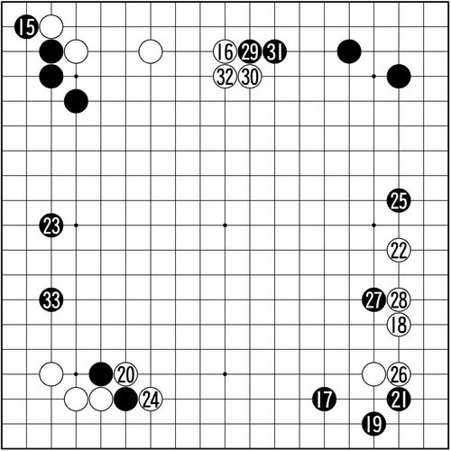 ´ç¿¬ÇØ º¸ÀÌ´Â 15¿¡µµ À̰ßÀÌ ÀÖ¾ú´Ù. ¿ì¼± Âü°íµµ 1À» ¼±Á¡ÇÑ µÚ A³Ä B³ÄÀÇ ¼±ÅÃÀ» µÚ·Î ¹Ì·ç°í ½Í´Ù´Â °Í. 7±îÁö ¡®Å« °÷¡¯ °æÀïÀ» »óÁ¤(ßÌïÒ)ÇÒ ¶§ Èæ B¸¦ ¼µÑ·¯ °áÁ¤ÇÒ ÀÌÀ¯°¡ ¾ø´Ù´Â Àǹ̴Ù. 20À» º¸·ùÇϰí 19·Î ´Þ·Á°£ Á¡¿¡¼µµ À彬ÀÇ ¹ßºü¸¥ ½Ç¸® ÃëÇâÀÌ ¿³º¸ÀδÙ. 23°ú 24´Â ´ç¿¬ÇÑ ÀÀÁ¢. 26Àº ±Ù°ÅÀÇ ¿ä¼Ò´Ù. 29ÀÇ ºÙÀÓÀÌ 11ºÐÀ» ¾´ ÃÖÃÊÀÇ Àå°í¼ö¿´´Ù. 25ÂÊ ÈæÁøµµ ¾àÇϰí, 31°ú 33ÀÇ °÷µµ °¡°í½Í¾î ¼±¼ö·Î ó¸®ÇÑ °Í. ÈæÀº ¸ñÀûÀ» ´Þ¼ºÇßÁö¸¸ ¹éµµ ±× »çÀÌ µÎÅÍ¿òÀ» ¾ò¾ú´Ù. À§ºóÀÇ ´ÙÀ½ ¼ö´Â?