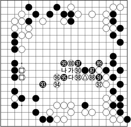 92±îÁö´Â ÀÏ´Ü ¹éÀÇ Àǵµ´ë·Î µÆ´Ù. ÇÏÁö¸¸ ÈæÀº À̹ø¿£ 93À¸·Î ¹Ý´ëÂÊ¿¡¼ ¶Ç ±ð¾Æµé¾î°£´Ù. 93Àº Áº¯ Èæ µ¹¿¡ À̳¢Ã³·³ ´Þ¶óºÙÀº ? µÎ Á¡µµ ¿ø°Ý Á¶ÁØÇϰí ÀÖ´Ù. 95, 97·Î Çึ ¸®µëÀ» ±¸ÇßÀ» ¶§ ¹é ¡®°¡¡¯´Â Èæ ¡®³ª¡¯·Î »ßÁ®³ª°¡ Áß¾Ó ¹é ¿ïŸ¸®°¡ Çã¹°¾îÁø´Ù. ±×·¸´õ¶óµµ 98·Î´Â ¡®´Ù¡¯°¡ ÈξÀ µÎÅÓ°í ÁýÀ¸·Îµµ ÀÌÀÍÀ̶õ ÁöÀû. ¹éÀº È¥½ÅÀÇ ÈûÀ¸·Î 100¿¡ ³¢¿ö°¬´Âµ¥¡¦.