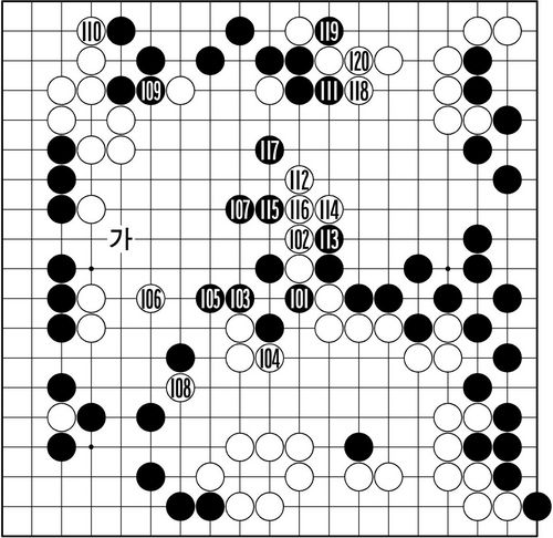 108Àº Èæ ¡®°¡¡¯ÀÇ Â÷´Ü¿¡ ´ëºñÇÑ °£Á¢ º¸°. ±×·¸´Ù¸é 106, 108·Î´Â ¡®°¡¡¯¿¡ µÎ¾î ÇÑ ¼ö·Î ¶«ÁúÇÏ´Â ¼ö´ÜÀº ¾ø¾úÀ»±î? ±× °ÍÀº Âü°íµµ 2, 4¸¦ ¿¬Å¸ ´çÇϰí 6±îÁö, À̹ø¿£ ? µÎ Á¡ÀÌ °í¸³µÈ´Ù. 11·Î µÎÅÓ°Ô ¹ÐÀÚ 112ÀÇ ÁÙÇà¶ûÀÌ ½ÃÀ۵ƴÙ. ÁýÀ¸·Îµµ ÀÚ½ÅÀÖ´Â ÈæÀº 117·Î ½½±×¸Ó´Ï Åð·Î¸¦ ¿¾îÁØ´Ù. ¿¹ÀÇ ¡®°¿Â Àü·«¡¯ÀÇ ÀÏȯÀÌ´Ù. 118 ÁÁÀº ¼ö. ÀÌÀ¯´Â ´ÙÀ½ º¸¿¡¼ ¹àÇôÁø´Ù.