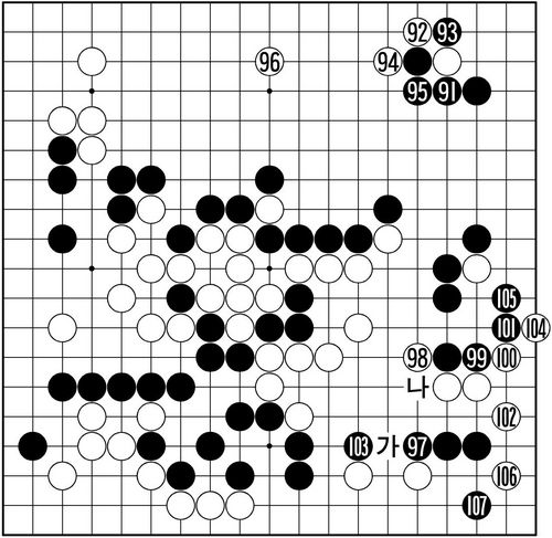 ÇÏÁö¸¸ 97¿¡ ¼ÕÀÌ µ¹¾Æ¿Í ÈæÀÇ ¿ì¼¼´Â ¿©ÀüÇÏ´Ù. 98¶§ 99´Â öÀúÇÑ ½Ç¸® ±âdzÀÇ ±è¼º·æ´ä°Ô ¾öû ¡®¶¯±ä¡¯ ¼ö. 102 ¶§ 103ÀÇ ºÙÀÓµµ Çö¸íÇÑ º¯½ÅÀ̾ú´Ù. ¡®°¡¡¯ ÀÚ¸®°¡ ¡®³ª¡¯ÀÇ Àý´ÜÀ» º¸´Â ¼±¼ö¿©¼ ÈæÀÌ ÇϺ¯À» °ÅÀÇ Á¢¼öÇÑ ¸ð½ÀÀ̱⠶§¹®ÀÌ´Ù. 107ÀÇ ½ÃÁ¡¿¡¼ ¹éÀº Áß¿äÇÑ Àü·«Àû ±â·Î¸¦ ¸ÂÀÌÇß´Ù.