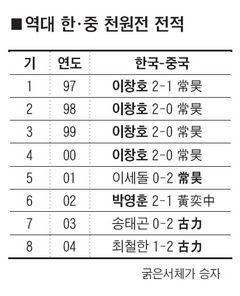 ÇÑ¡¤ÁßÀ» ´ëÇ¥ÇÏ´Â µÎ ÀþÀº È¿¿õ(üüê©)ÀÌ Á¤¸é ´ë°áÀ» °®´Â´Ù. Çѱ¹ ÃÖöÇÑ(20) Îú´Ü°ú Áß±¹ÀÇ ±¸¸®(ͯÕô¡¤22) öÒ´Ü. ¿À´ÃºÎÅÍ »çÈê(19¡¤21¡¤22ÀÏ)°£ Áß±¹ Åü¸®(ÔÒ×ì)¿¡¼ ÆîÃÄÁú Á¦9ȸ ÇÑ¡¤Áß Ãµ¿øÀü 3¹ø±â´Ù. °°Àº À̸§ÀÇ ¾ç±¹ ŸÀÌÆ²Àü ¿ì½ÂÀÚ°¡ ¸Å³â °Ü·ï ¿Â °á°ú, Åë»ê ÀüÀû¿¡¼± Çѱ¹ÀÌ 5½Â3ÆÐ·Î ¾Õ¼ ÀÖÁö¸¸ ÃÖ±Ù¿£ ¿ÀÈ÷·Á Áß±¹ÀÌ 2¿¬½Â ÁßÀÌ´Ù. ¿ÃÇØ ´ë±¹ °á°ú´Â ¾î¶»°Ô µÉ±î. ´ë±¹ÀÚµé ¸¶À½ ¼ÓÀ¸·Î Çѹø µé¾î°¡ º¸¾Ò´Ù.