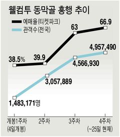 ¡®À£ÄÄÅõ µ¿¸·°ñ¡¯Àº Áö³ 4ÀÏ °³ºÀ ÀÌÈÄ 25ÀϱîÁö Àü±¹¿¡¼ 495¸¸7490¸íÀÌ °ü¶÷, 26ÀÏ 500¸¸¸íÀ» µ¹ÆÄÇß´Ù. ¿Ã ÃÖ´ë ÈïÇàÀÛÀ̾ú´ø ¡®¸»¾ÆÅ桯ÀÌ 8ÁÖ °É·Á ¼¼¿î ±â·ÏÀ» °³ºÀ 23ÀÏ ¸¸¿¡ ´Þ¼ºÇÑ ¼À. ÀÌ ¿µÈ´Â °³ºÀ 11ÀÏ ¸¸¿¡ 300¸¸¸íÀ» µ¹ÆÄ, ¡®Å±رâ ÈÖ³¯¸®¸ç(7ÀÏ)¡¯¿¡ ÀÌ¾î ¿ª´ë 2À§(¡®½Ç¹Ìµµ¡¯¿Í µ¿·ü)´Ù.