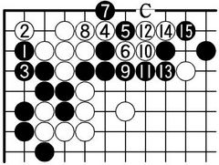 Àå°í³¡¿¡ ³õÀÎ 65°¡ ¹®Á¦¼ö. ´ç¿¬È÷ Âü°í 1µµ 1, 3À¸·Î Á¥Çô À̾î¾ß Çß´Ù. ¹éÀº 6±îÁö°¡ ºÒ°¡ÇÇÇѵ¥ ÈæÀº ¿Ï»ýÀÌ°í ¹éÀº ´Ü 4ÁýÀÌ ³µÀ» »ÓÀÌ´Ù(A°¡ ¾ðÁ¦³ª ÈæÀÇ ¼±¼ö´Ù). ±×·± µÚ 7. ´ÙÀ½ Èæ B¸é »óÁß¾Ó¿¡ °Å´ëÇÑ Èæ ÁýÀÌ °Ç¼³µÈ´Ù. Âü°í 2µµ 6À¸·Î ²÷¾î°¡´Â ¼ö´Â 15±îÁö ÁøÇà ÈÄ CÀÇ ÆÐ°¡ Å« ºÎ´ãÀ¸·Î ³²´Â´Ù.