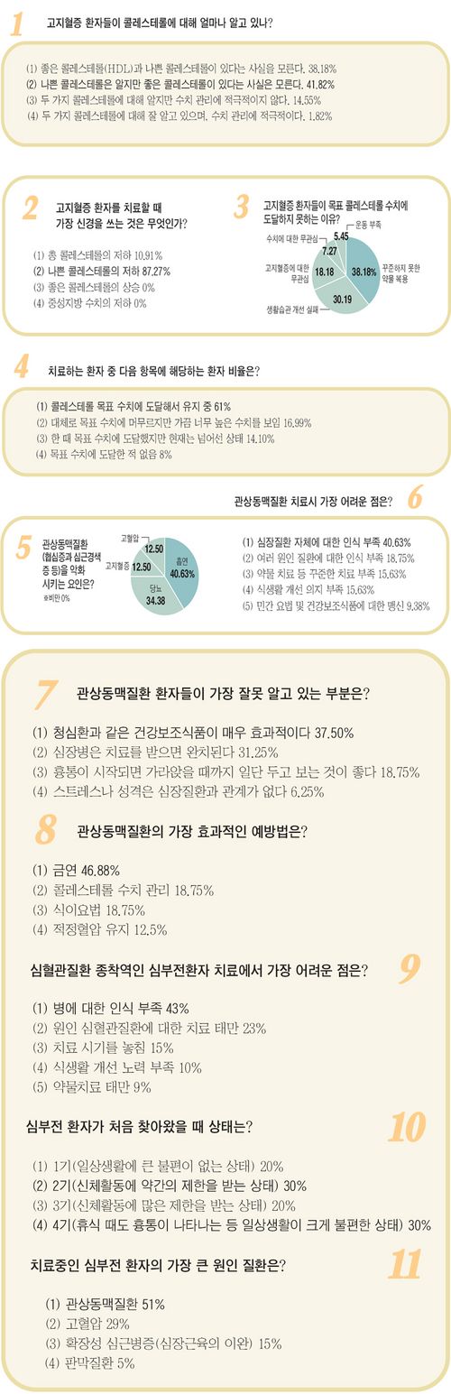 ÀÇ»çÀÇ ºÒ¸¸Àº ´ë´ÜÇß´Ù. ±×µéÀº ȯÀÚµéÀÌ ÀڱⰡ ¾Î°í ÀÖ´Â º´À» ³Ê¹« ¸ð¸£°í ÀÖÀ¸¸ç, ±×´ÙÁö ¾Ë·Á°í ³ë·ÂÇÏÁöµµ ¾Ê´Â´Ù°í »ý°¢Çϰí ÀÖ¾ú´Ù. Áúº´¿¡ ´ëÇÑ È¯ÀÚÀÇ Áö½ÄÀº °íÁöÇ÷Áõ 55Á¡, °ü»óµ¿¸ÆÁúȯ(Çù½ÉÁõ°ú ½É±Ù°æ»öÁõ µî) 56.03Á¡ µî ³«Á¦ ¼öÁØÀ̾ú´Ù.