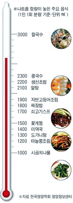 ÈçÈ÷ Áý¿¡¼ Á÷Á¢ Á¶¸®ÇÑ °ÍÀº ±¦Âú°ÚÁö ÇÏ°í ¾È½ÉÇÏÁö¸¸ ¹«½ÉÄÚ ¸Ô´Â ¹ÝÂù ¼Ó¿¡ ³ªÆ®·ý ÇÔ·®ÀÌ ³ôÀº °æ¿ì°¡ ¸¹´Ù. ¿ì¸®³ª¶ó À½½Ä¹®È´Â ÀýÀ̰ųª ¼Ò±Ý¿¡ ¸»¸®´Â °¡°ø À½½ÄÀÌ ¸¹¾Æ ³ªÆ®·ý ¼·Ãë·®ÀÌ ±Ý»õ ¿Ã¶ó°£´Ù. ¼Ò±Ý °£ÀÌ µë»Ò µé¾î°£ ±¹¹°À» ¼±È£ÇÏ´Â ½Ä½À°üµµ ¹®Á¦´Ù. ¶ó¸éÀÇ °æ¿ì §¸´ç 2500§·ÀÇ ³ªÆ®·ýÀ» ÇÔÀ¯Çϰí ÀÖ´Ù.