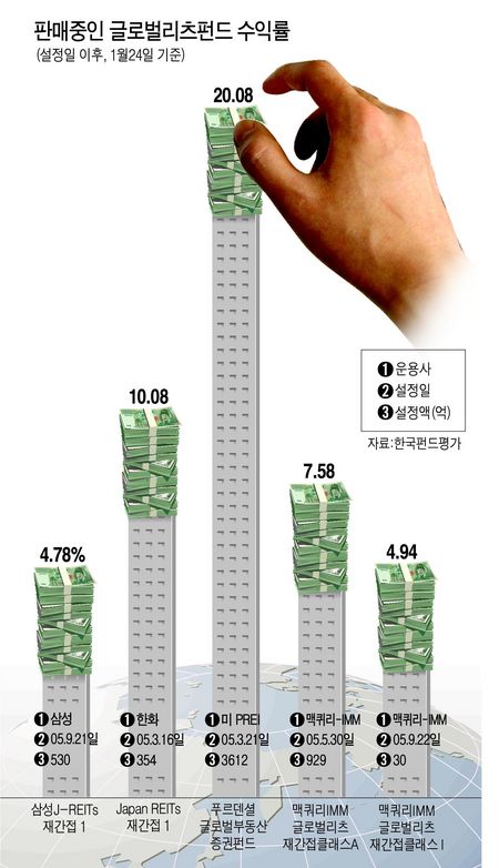 ¶Ç Ǫ¸£µ§¼ÈÅõÀÚÁõ±ÇÀÌ ÆÇ¸ÅÇÏ´Â ±Û·Î¹úºÎµ¿»êÁõ±ÇÆÝµå´Â ¹Ì±¹ÀÇ Çª¸£µ§¼ÈºÎµ¿»êÅõÀÚȸ»ç(PREI)¿¡ ÀÇÇØ ¿î¿ëµÈ´Ù. Àü ¼¼°è ºÎµ¿»êÀ» Çٽɻç¾÷À¸·Î ÇÏ´Â ±â¾÷ÁֽĿ¡ ÆÝµåÀÚ±Ý 3ºÐÀÇ2 Á¤µµ¸¦ ÅõÀÚÇÑ´Ù. Áö³ÇØ 3¿ù ÆÇ¸Å ÀÌÈÄ ÇöÀç±îÁö 3600¾ï¿øÀÌ ¸ô·È´Ù. ±×µ¿¾È 20%°¡ ³Ñ´Â ¼öÀÍÀ» °ÅµÎ°í ÀÖ´Ù. ÀÌ ¹Û¿¡µµ ÀϺ» ºÎµ¿»ê¿¡ ÅõÀÚÇÏ´Â »ï¼º¿î¿ëÀÇ »ï¼ºÀϺ»¸®Ã÷ÆÝµå, ÇÑÈ¿î¿ëÀÇ ÇÑÈÀϺ»¸®Ã÷ÆÝµåµµ ±¦ÂúÀº ¼öÀÍÀ» °ÅµÎ°í ÀÖ´Ù. ±âÀºSGÀÚ»ê¿î¿ëÀº 24ÀϺÎÅÍ ¾Æ½Ã¾Æ¡¤ÅÂÆò¾ç Áö¿ª ºÎµ¿»ê¿¡ ÅõÀÚÇÏ´Â ¡®¾Æ½Ã¾Æ¡¤ÅÂÆò¾ç ¸®Ã÷ Àç°£Á¢¡¯ ÆÝµå¸¦ Ãâ½Ã, HSBCÀºÇàÀ» ÅëÇØ ÆÇ¸Å¿¡ ³ª¼¹´Ù.