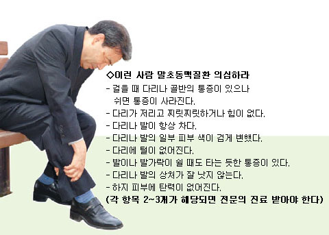 ´Ù¸® µ¿¸Æ°æÈ°¡ ¾ÇȵǸé, ´Ù¸® ±ÙÀ°À» ¿òÁ÷ÀÌÁö ¾Ê¾Æµµ ÅëÁõÀÌ ¿Â´Ù. ´Ù¸®ÀÇ Ç÷¾× °ø±ÞÀÌ Â÷´ÜµÇ±â ¶§¹®ÀÌ´Ù. ÀÌ·¸°Ô µÇ¸é ½ÉÀåÀ¸·ÎºÎÅÍ °¡Àå ¸Õ ºÎÀ§, Áï ¹ßÀ̳ª ¹ß°¡¶ô µîÀÌ ½â´Â ±Ë¾çÀÌ »ý±â±âµµ ÇÑ´Ù. ÀÌ »óŸ¦ ¹æÄ¡Çϸé ȯÀÚ 3~4¸í ÁßÀÇ ÇÑ ¸í²Ã·Î ´Ù¸® µ¿¸ÆÀÌ ¿ÏÀüÈ÷ ¸·Çô, ¹ß°¡¶ôÀ̳ª ´Ù¸®¸¦ Àý´ÜÇÏ´Â ¼öµµ »ý±ä´Ù. ƯÈ÷ ´ç´¢ ȯÀÚ´Â º¸Åë »ç¶÷¿¡ ºñÇØ ´Ù¸® Àý´Ü À§ÇèÀÌ 10¹è ÀÌ»ó ³ô´Ù.