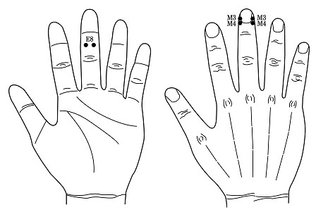 ¼öÁöħ¿¡¼ ±Í»óÀÀºÎÀ§´Â ¾ç¼Õ ÁßÁö(ñéò¦)ÀÇ ¼ÕÅé ¾ç¿· ºÎÀ§ÀÌ´Ù. M3¡¤4 ºÎÀ§·Î¼ ¼ÕÀ̳ª ¸·´ë±â ÀÚ·ç·Î ´·¯º¸¸é ´ë´ÜÈ÷ ¾ÆÇ ÁöÁ¡ÀÌ ³ªÅ¸³´Ù. ÀÌ ºÎÀ§°¡ ±³°¨½Å°æ °ú¹ÎÁöÁ¡À¸·Î¼ ½Å¼öÁöħÀ¸·Î 1~2mm ÀÚÀÔÇϸé, ±³°¨½Å°æÀÌ ÁøÁ¤µÇ¸é¼ ±Í¿ï¸²ÀÌ ÁøÁ¤µÉ ¼ö ÀÖ´Ù.