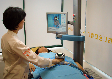 À̹ø¿¡ ¾Æ¸§´Ù¿î³ª¶ó ÇǺΰú¿¡¼ ±¹³» ÃÖÃÊ·Î µµÀÔµÈ Ã¼¿ÜÃæ°ÝÆÄ Áö¹æ¼¼Æ÷ÆÄ±«¼úÀº ¿ä·Î°á¼®À» Ä¡·áÇÏ´Â µ¥ Ȱ¿ëµÇ´Â ¼â¼®¼ú°ú ºñ½ÁÇÑ ¿ø¸®´Ù. °ÇÑ ÃÊÀ½ÆÄ¸¦ ¹Ì»çÀÏó·³ Á¤Á¶ÁØÇÏ¿© ½Ã¼ú ºÎÀ§¿¡ ½÷ ÁÜÀ¸·Î½á Ç÷°üÀ̳ª ½Å°æ, ÇǺΠÁ¶Á÷ÀÇ ¼Õ»ó¾øÀÌ Áö¹æ¼¼Æ÷¸¸ ¼±ÅÃÀûÀ¸·Î ÆÄ±«ÇÏ´Â ¹æ¹ýÀÌ´Ù. Áö¹æ¼¼Æ÷ÀÇ ¼ýÀÚ°¡ ÁÙ¾îµé±â ¶§¹®¿¡ Àß °ü¸®¸¸ ÇØ ÁÖ¸é ¿ä¿äÇö»óµµ ¾ø´Ù.