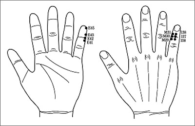 ¹Ù±ùÂÊ ¹ß¸ñÀÌ »á °æ¿ì M29, M30, M31, I36, I37, I38 ºÎ±Ù¿¡¼ ½Ã¼úÇØ Ä¡·áÇÑ´Ù. ¸¸¾à ÅëÁõÀÌ ¿ÏÀüÈ÷ ¾ø¾îÁöÁö ¾ÊÀ¸¸é »õ³¢¼Õ°¡¶ô ³¡¸¶µð ÁÖÀ§¸¦ ¸ðµÎ ´·¯¼ Á¦2ÀÇ °¡Àå ¾ÆÇ ÁöÁ¡À» ã¾Æ ½Å¼öÁöħÀ» 1mm Á¤µµ Â´Ù. ±×·¯¸é ´õ¿í ¼ÓÈ÷ ³ª¾ÆÁø´Ù.