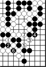 ¡´Àå¸éµµ¡µ °í Á¶³²Ã¶ ´ë±¹¼öÀÇ °ÉÀÛº¸ Áß¿¡¼ ÇÑ ÆÇ °ñ¶ú´Ù. µµÀüÀÚÀÇ ¿ìº¯ ¹é ´ë¸¶°¡ °ÅÀÇ ÀâÈù ¸ð½À. ¹éÀº ¿©±â¼ Àý¹¦ÇÑ ¼ö¼øÀ¸·Î ´ë¸¶¸¦ »ì·Á³»´Âµ¥¡¦. ¡´1µµ¡µ(½ÇÀü ÁøÇà) 1, 3ÀÌ ¸ÚÁø ¿¬Å¸. ¹é 7¿¡¼ ÈæÀº µ¹À» °ÅµÎ¾ú´Ù. °è¼ÓÇØ¼ µÐ´Ù¸é ¾îÂî µÉ±î? ¡´2µµ¡µ Èæ 1ÀÌ ºÒ°¡ÇÇÇÒ ¶§ 2·Î Àմ´Ù. 3À¸·Î ÆÄÈ£ÇØ 7±îÁö´Â ÇÊ¿¬. ´ÙÀ½ 8, 10ÀÌ ÁÁÀº ¼ö¼øÀ¸·Î 15±îÁö ÆÐ(ø®)Áö¸¸ ¹éÀÇ ÀÚü ÆÖ°¨ÀÌ ¸¹¾Æ ´ë¸¶´Â »ýȯÇÑ´Ù. (142¼ö ³¡, ¹é ºÒ°è½Â)