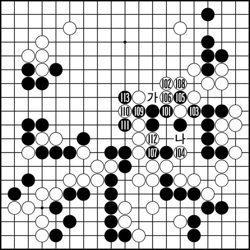ÈæÀº Áß¾Ó ´ë¸¶¸¦ ¼ö½ÀÇ쵂 »óº¯ ¹éÀÇ ÆØÃ¢µµ °æ°èÇØ¾ß ÇÒ ÀÔÀå. 101ÀÇ ºó»ï°¢ÀÌ À§±â ¼Ó¿¡¼ ã¾Æ³½ È£ÂøÀ̾ú´Ù. ÀÌ ¼ö·Î ¡®°¡¡¯¸é ¹éÀº Àû´çÈ÷ »ì·ÁÁÖ°í ¹ÛÀ» ½Î¹ß¶ó »óº¯¿¡ °Å´ëÇÑ ÁýÀ» À常ÇÒ °ÍÀÌ´Ù. 104·Î 105¿¡ ÀÌÀ¸¸é Èæ 112, ¹é 104, Èæ ¡®³ª¡¯·Î Áß¾Ó ÈæÀº »ì°í ¹éÀÇ ¿Ü°û¸¸ ÇãÁ¡ÀÌ ³²¾Æ ³»Å°Áö ¾Ê´Â´Ù.