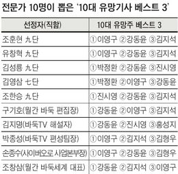 Çѱ¹ ¹ÙµÏ ³»ÀÏÀÇ ÁÖ¿ªÀº ´©±¸³Ä. Â÷¼¼´ë ¹ÙµÏ°è 1ÀÎÀÚ ÀÚ¸®¸¦ ²çÂû ÃÖ°í À¯¸ÁÁÖ¿¡ ´ëÇÑ ³íÀïÀÌ ¶ß°Ì´Ù. 87³â 1¿ù 1ÀÏ ÀÌÈÄ Ãâ»ýÇÑ ±¹³» 10´ë(ÓÛ) ÇÁ·Î ±â»ç ¼ö´Â ¸ðµÎ 31¸í. ÀÌµé ¡®ÃµÀç ¼Ò³â¡¯ ±×·ìÀ» ´ë»óÀ¸·Î Àü¹®°¡ 10¸í¿¡°Ô ¾ÓÄÉÆ®¸¦ ½Ç½ÃÇØºÃ´Ù. °¢ÀÚ 3¸í¾¿ ¼øÀ§´ë·Î ÃßõÅä·Ï Çϰí 1À§ 5Á¡, 2À§ 3Á¡, 3À§ 2Á¡¾¿ ¹èÁ¡ ÈÄ À̸¦ ÇÕ°èÇÏ´Â ¹æ½ÄÀ» ÅÃÇß´Ù.