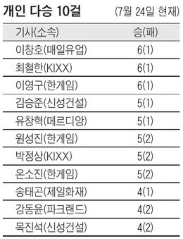 °³ÀÎ ¼ºÀû ·¹À̽º¿¡¼± ÀÌâȣ(¸ÅÀÏÀ¯¾÷) ÃÖöÇÑ(KIXX) ÀÌ¿µ±¸(ÇѰÔÀÓ) µî 3¸íÀÌ 6½Â1ÆÐ·Î °øµ¿ ¼±µÎ±ÇÀ» Çü¼ºÇß´Ù. ¹ÙµÏ¸®±×´Â ¿À´Â 27ÀÏ~30ÀÏ ³ªÈê°£ ÆÄÅ©·£µå ´ë ¿µ³²ÀϺ¸, ½Å¼º°Ç¼³ ´ë ¿ùµå¸Þ¸£µð¾Ó ÀüÀ» ³¡À¸·Î Àü¹Ý±â ÀÏÁ¤À» ¸¶Ä¡°Ô µÈ´Ù.