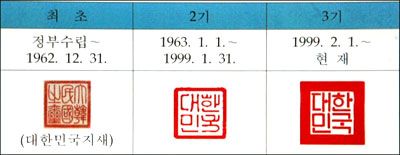 Áö³ 1999³â Á¦À۵ŠÇöÀç±îÁö »ç¿ëµÇ°í ÀÖ´Â ±¹»õ´Â 10.1§¯ÀÇ Á¤¹æÇü¿¡´Ù '´ëÇѹα¹'ÀÇ ³×±ÛÀÚ¸¦ °¡·Î·Î »õ°å°í, ±ÛÀÚ´Â ÈÆ¹ÎÁ¤À½Ã¼·Î µÅÀÖ´Ù.