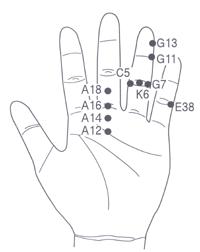 ¼öÁöħÀÇ Ã³¹æÀ¸·Î´Â ¾ç¼Õ Á¦2Áö¿¡ Àº¹ÝÁö³ª À̿¹ÝÁö(¼øÀº¹ÝÁö¿¡ ¼ø±ÝÀÌ ºÎÂøµÈ ¿ºÐ»ê¿ë ¹ÝÁö)¸¦ ³¢¿ì¸é µµ¿òµÈ´Ù. ½ÉÀåÀÇ Ç÷¾×¼øÈ¯°ú ¿À» ÇØ¼ÒÇϱâ À§Çؼ´Â A12, 14, 16, 18, G11, 13, E38°ú »óÀÀºÎÀ§¿¡ ½Å¼öÁöħÀ̳ª ¼¾ÏħÀ¸·Î 1mm¾¿¸¸ »ì¦ Â°í ¾à 20~30ºÐ°£ Àִ´Ù.