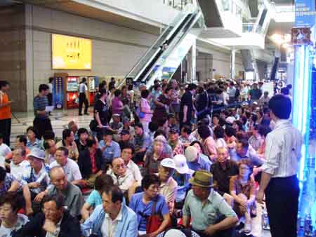 ¹Ú¶÷ȸ ¸¶Áö¸· ³¯, °³¸· ÀüºÎÅÍ ¼ö¹é¸íÀÇ »ç¶÷µéÀÌ ·Îºñ¿¡ µÕ±Û°Ô ÁÙ Áö¾î ¼ ÀÖ´Ù.