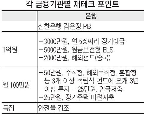 ¸ñµ· 1¾ï¿ø Áß 1500¸¸¿øÀº ºñ»ó¿ëÀ¸·Î CMA°èÁ¿¡ ¿¹Ä¡Çϰí, 3500¸¸¿øÀº ÁֽļºÀåÇü ÆÝµå¿¡ ³ÖÀ» °ÍÀ» ±ÇÇß´Ù. ¶Ç »ó´ëÀûÀ¸·Î ¾ÈÁ¤ÀûÀÎ ¼öÀÍÀ» ¿Ã¸± ¼ö ÀÖ´Â ¹è´çÁÖ ÆÝµå¿¡ 2000¸¸¿ø, ÀºÅðÀÚ±ÝÀ» ¸¶·ÃÇϱâ À§ÇØ º¯¾×¿¬±Ý¿¡ 3000¸¸¿øÀ» ¹èÁ¤Çß´Ù.