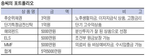 ¼Û¾¾°¡ ±âÁ¸ ÁÖÅÃÀ» Á¤¸®ÇÒ °æ¿ì ¼Û¾¾ÀÇ ±ÝÀ¶ÀÚ»êÀº ÅðÁ÷±ÝÀ¸·Î ¹ÞÀº 1¾ï¿ø°ú ¸Å´Þ ¼ö·ÉÇÏ´Â ¿¬±Ý 60¸¸¿ø, ±âÁ¸ÁÖÅà ¸Åµµ·Î ¿¹»óµÇ´Â ÀÚ±Ý 6¾ï5000¸¸¿ø(Àü¼¼±Ý 2¾ï¿ø º°µµ)ÀÌ µÈ´Ù. À̸¦ Åä´ë·Î ±ÝÀ¶Àڻ꿡 ´ëÇÑ Æ÷Æ®Æú¸®¿À¸¦ ±¸¼ºÇØ º¸ÀÚ.