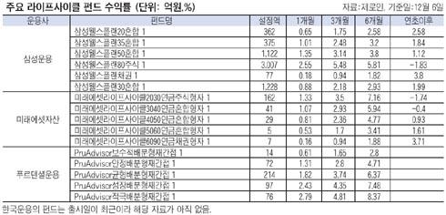 ¹Ì±¹¿¡¼ °³¹ßµÈ LCF ÆÇ¸Å¾×Àº 1996³â ù ¼±À» º¸¿´À» ¶§ 60¾ï´Þ·¯¿¡¼ 10¿©³â ¸¸¿¡ 1700¾ï´Þ·¯·Î 30¹è °¡±îÀÌ ¼ºÀåÇß´Ù. ¹Ì±¹ ÀÚ»ê¿î¿ë»ç Çǵ¨¸®Æ¼¡¤¹ð°¡µåÀÇ °æ¿ì 20´ë ÅõÀÚÀÚÀÇ ÁֽĺñÁßÀ» 80%¿¡¼ ½ÃÀÛ, ¿¬·É´ë°¡ ³ô¾ÆÁú¼ö·Ï 10%¾¿ ÁֽĺñÁßÀ» ÁÙ¿©³ª°¡´Â ¹æ½ÄÀ¸·Î »óǰÀ» ¼³°èÇÑ´Ù. Çѱ¹¿¡ ³ª¿Í ÀÖ´Â LCFµµ ºñ½ÁÇÑ ±¸Á¶·Î ¿î¿ëµÈ´Ù. 2002³â Ãâ½ÃµÈ »ï¼ºÅõ½Å¿î¿ëÀÇ¡®»ï¼ºÀ£½ºÇ÷£¡¯Àº LCFÀÇ ¸ºÇü°ÝÀÌ´Ù. ÁÖ½ÄÅõÀÚºñÀ²ÀÌ ³ôÀº ¼ºÀåÇü¡¤Ã¤±ÇÇü ±×¸®°í µÑÀÇ Áß°£ÀΠȥÇÕÇü ÆÝµå °¡¿îµ¥ Çϳª¿¡ °¡ÀÔÀ» Çϰí, ÀÚ½ÅÀÇ ³ªÀ̳ª ¼ºÇâ¿¡ µû¶ó ³ª¸ÓÁö 5°³ ÀÚ(í)ÆÝµå¸¦ ÀÚÀ¯·Ó°Ô °¥¾ÆÅ» ¼ö ÀÖ´Ù. Áö³ 6ÀÏ ÇöÀç ÁֽĺñÀ²ÀÌ 80%ÀΡ®À£½ºÇ÷£80ÁÖ½Ä1¡¯ÀÇ ¿¬ÃÊÀÌÈÄ ¼öÀÍ·üÀº -1.83%·Î ¼ºÀåÇü Æò±Õ(-0.83%)º¸´Ù ³·¾ÒÁö¸¸, ÁֽĺñÀ²ÀÌ 50%ÀΡ®À£½ºÇ÷£50È¥ÇÕ1¡¯(1.12%) µî ³ª¸ÓÁö ÀÚÆÝµåµéÀº ³ô¾Ò´Ù. ¹Ì·¡¿¡¼ÂÀÚ»ê¿î¿ëÀÇ¡®¶óÀÌÇÁ»çÀÌŬ¿¬±ÝÅõÀÚ½ÅŹ¡¯Àº ÁֽĺñÁßÀÌ ³ôÀº¡®2030¿¬±ÝÁÖ½ÄÇü¡¯ºÎÅÍ ¾ÈÀü¼ºÀÌ ³ôÀº¡®6090¿¬±Ýä±ÇÇü¡¯±îÁö ´Ù¾çÇÑ ÆÝµå¸¦ ¿¬ 2ȸ±îÁö ¼ö¼ö·á ¾øÀÌ °¥¾ÆÅ» ¼ö ÀÖ´Ù. ¿¬±ÝÀúÃàÆÝµå·Î 1³â¿¡ 300¸¸¿ø±îÁö ¼Òµæ°øÁ¦ÇýÅõµ ÀÖ´Ù. ´Ü, ÃÖ¼ÒºÒÀԱⰣÀÌ 10³âÀÌ´Ù. Çѱ¹¿î¿ëÀÌ Áö³´Þ Áß¼ø ³»³õÀº¡®Çѱ¹LCFÈ¥ÇÕÀç°£Á¢¡¯Àº ¸¸±â½ÃÁ¡ÀÌ 2010³âºÎÅÍ 2035³â±îÁö 5³â ´ÜÀ§·Î ±¸¼ºµÅ ÀÖ´Ù. ¸¸ÀÏ ÀÚ½ÅÀÌ 2025³âÂë ÀºÅðÇÒ °Í °°À¸¸é 2025³â ¸¸±â LCF¿¡ °¡ÀÔÇÏ¸é µÈ´Ù. ±×·¯¸é ¸¸±â ½Ã±îÁö ÁÖ½ÄÇüÆÝµå¿¡ ´ëÇÑ ÅõÀÚºñÁßÀÌ ÀÚµ¿ÀûÀ¸·Î ÁÙ¾îµå´Â ±¸Á¶´Ù. ÀÌ ¿Ü¿¡ Çǵ¨¸®Æ¼ÀÚ»ê¿î¿ëµµ ¸¸±âÀÏÀÌ °¢°¢ 2010³â, 2020³âÀΡ®2010¸ñÇ¥ÆÝµå¡¯¿Í¡®2020¸ñÇ¥ÆÝµå¡¯¸¦ ÃÖ±Ù ³»³õ¾Ò´Ù.
