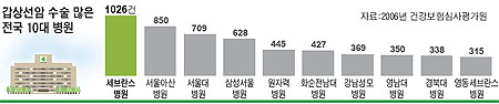 ȯÀÚµéÀÌ ¸ô¸®´Â À¯¸í º´¿øµéÀº °ÅÀÇ ¸ÅÀÏ ¼ö¼úÇÏ´Â µî °Ç౺À» Çϰí ÀÖ´Ù. 2006³â °©»ó¼±¾Ï ¼ö¼ú 1026°ÇÀ¸·Î Àü±¹ 1À§ÀÎ ¼¼ºê¶õ½ºº´¿øÀº ¿Ü°ú ¹ÚÁ¤¼ö¡¤³²±âÇö µÎ ±³¼ö°¡ 1ÁÖÀÏ¿¡ Æò±Õ 45°Ç ¼ö¼úÇϰí ÀÖÀ¸³ª, ȯÀÚ´Â Á»Ã¼ ÁÙÁö ¾Ê°í ÀÖ´Ù. ´Ù¸¥ À¯¸í ´ëÇк´¿øµéµµ °©»ó¼±¾Ï ¼ö¼ú Àü´ã ±³¼ö°¡ ÇѵΠ¸í»ÓÀÌ¾î¼ ¼ö¼ú Àûü´Â ½±°Ô Ç®¸®Áö ¾ÊÀ» Àü¸ÁÀÌ´Ù.