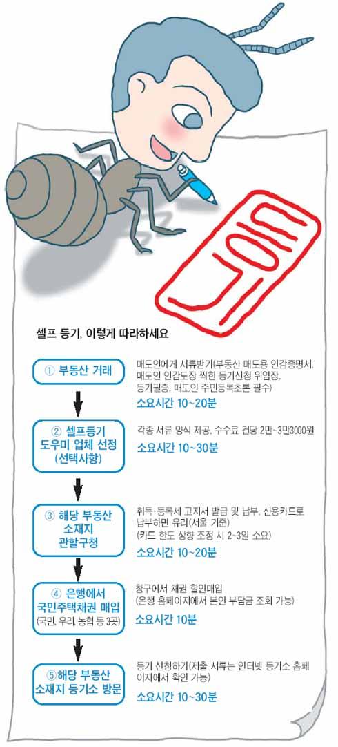 ¸¶Áö¸·À¸·Î µî±â¼Ò¸¦ ¹æ¹®Çؼ µî±â ½Åû¼(ÀÎÅÍ³Ý µî±â¼Ò¿¡¼ ´Ù¿î·Îµå °¡´É)¿Í Áغñ ¼·ùµéÀ» ¹¾î¼ Á¦ÃâÇÏ¸é ¿Ï·á. óÀ½¿£ µÎ·Á¿ü´ø ³ª¶ó¾¾, ³Ê¹« ½¬¿ö¼ ÇãÅ»Çϱâ±îÁö Çß´Ù. ¡®µî±â´åÄÄ¡¯ °ü°èÀÚ´Â ¡°ÀºÇà¿¡¼ ´ëÃâÀ» ¹Þ¾Æ ÁýÀ» »ì °æ¿ì, °í°´ÀÌ Á÷Á¢ µî±âÇÑ´Ù°í Çϸé ÀºÇà¿¡¼ ºýºýÇÏ°Ô ±¸´Â °æ¿ì°¡ ¸¹´Ù¡±¸é¼ ¡°±×·² °æ¿ì ¼ÒÀ¯±Ç ÀÌÀü µî±â´Â ¸Å¼öÀÎÀÌ Á÷Á¢ Çϰí, ±ÙÀú´ç±Ç ¼³Á¤ µî±â´Â ÀºÇà¿¡¼ ÁöÁ¤ÇÑ ¹ý¹«»ç°¡ ÇÏ´Â ½ÄÀ¸·Î ÀýÃæÇÏ¸é µÈ´Ù¡±°í Á¶¾ðÇß´Ù.