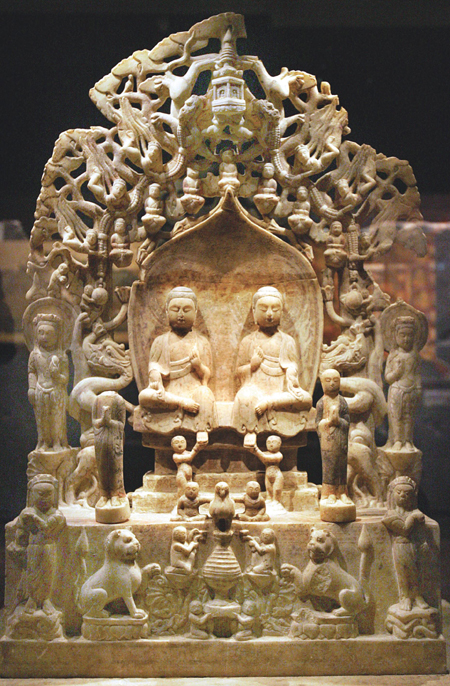 Á¶°¢°ú µ¸À»»õ±è ±â¹ýÀ» È¥ÇÕÇÑ ÇÑ ½ÖÀÇ ¹Ì¸¤¹Ý°¡»ó. °¡ºÎÁ¸¦ Ʋ°í ¸í»ó¿¡ Àá±ä ¹Ì¸¤¹Ý°¡»ó ¿·À¸·Î Çù½Ã(ú÷ã´)º¸»ì µîÀ» ¹èÄ¡Çß´Ù. 1500¿©³â Àü ÀÛǰÀÌ´Ù.