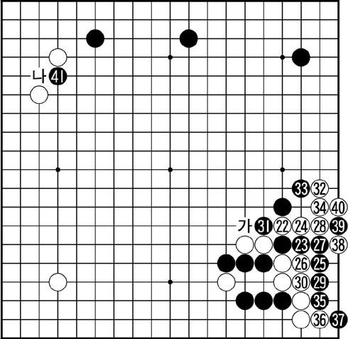22·Î ´Ü¼öÄ¡°í 31·Î ²÷´Â µ¥±îÁö´Â ¿Ü±æ. 40±îÁöµµ ´ë¾ÈÀÌ ¾ø´Â Á¤¼® °úÁ¤ÀÌ´Ù. 40±îÁö µÎ¾îÁø Àå¸é¿¡¼ Âü°íµµ¸¦ º¸ÀÚ. 4±îÁö ¼±¼öÇϰí 5¸é ¹éÀº A·Î ¿ìÇÏ Èæ 8Á¡À» Àâ¾ÆµÎ´Â °ÍÀÌ ¿¾ Á¤¼®À̾ú´Ù. ÇÏÁö¸¸ 5¶§ 6À¸·Î ¸¶´Ã¸ðÇϰí 10±îÁö ¹Ù²ãÄ¡±âÇÏ´Â ¼ö¹ýÀÌ ¹ß°ßµÆ´Ù. ÀÌ ±×¸²Àº ¹é BÀÇ »§¶§¸²ÀÌ ¾ðÁ¦°Ç ¼±¼ö¿©¼ ¹éÀÌ µÎÅÓ´Ù´Â °á·Ð. µû¶ó¼ ¿äÁò¿£ Âü°íµµ 5ÀÇ ¼±¼ö Ȱ¿ëÀÌ »ç¶óÁ³´Ù.