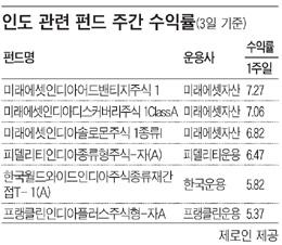 Àεµ ÆÝµå ¼öÀÍ·üµµ ÀÌ¿¡ µû¶ó °í°ø ÇàÁøÀÌ´Ù. ÀÏ¹Ý ÇØ¿Ü ÆÝµåÀÇ ÁÖ°£ Æò±Õ ¼öÀÍ·ü(3ÀÏ ±âÁØ)ÀÌ 4.08% ¿À¸¦ µ¿¾È ¹Ì·¡¿¡¼ÂÀÚ»ê¿î¿ëÀÇ ¡®ÀÎµð¾Æ ¾îµå¹êƼÁö¡¯ ÆÝµå´Â 7.27%¸¦ ±â·ÏÇß°í ¡®¹Ì·¡¿¡¼ÂÀÎµð¾Æ µð½ºÄ¿¹ö¸®Áֽġ¯ÆÝµå°¡ 7.06% ¼öÀÍ·üÀ» º¸¿´´Ù. Çǵ¨¸®Æ¼ÀÇ ¡®Àεð¾ÆÁ¾·ùÇü Áֽġ¯ ÆÝµå´Â 6.47%, Çѱ¹¿î¿ëÀÇ ¡®¿ùµå¿ÍÀ̵å Àεð¾ÆÁÖ½ÄÀç°£Á¢¡¯ ÆÝµå´Â 5.82%¸¦ ±â·ÏÇØ Æò±Õ ÀÌ»ó ½ÇÀûÀ» º¸¿´´Ù.