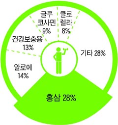 ½ÄǰÀǾàǰ¾ÈÀüûÀÇ 2005³âµµ °Ç°±â´É ½Äǰ ¸ÅÃâ ÇöȲ¿¡ µû¸£¸é È«»ï Á¦Ç°ÀÌ 1919¾ï¿ø ¾îÄ¡°¡ ÆÈ·Á Àüü °Ç°±â´É ½Äǰ ¸ÅÃâ(6866¾ï¿ø)ÀÇ 28%¸¦ Â÷ÁöÇϸç 1À§¸¦ ±â·ÏÇß´Ù. ¾Ë·Î¿¡ ÇÔÀ¯ Á¦Ç°(971¾ï¿ø¡¤14%)ÀÌ 2À§, ºñŸ¹Î¡¤¾Æ¹Ì³ë»ê¡¤½ÄÀ̼¶À¯ µîÀÌ ÁÖ ¿ø·áÀÎ ¿µ¾çº¸Ãæ¿ë Á¦Ç°(949¾ï¿ø¡¤13%)ÀÌ 3À§¿´´Ù. µÚ¸¦ ÀÌ¾î °üÀý°Ç° ¿Ç³À» À̲ø¾ú´ø ±Û·çÄÚ»ç¹Î(643¾ï¿ø¡¤9%) ÇÔÀ¯ Á¦Ç°°ú, »õ·Î¿î ¿µ¾çÁ¦·Î °¢±¤ ¹Þ¾Ò´ø Ŭ·Î·¼¶ó(576¾ï¿ø¡¤8%)°¡ °¢°¢ 4À§¿Í 5À§¸¦ Â÷ÁöÇß´Ù.