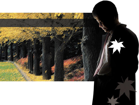 ÄÚÆ® ±êÀ» ¿Ã·Á ¼¼¿î Á߳⠳²¼ºÀÇ ÁßÈÄÇÑ ¸ÚÀÌ ¾î¿ï¸®´Â °¡À»ÀÌ´Ù. ±×·¯³ª ±×µé¿¡°Ô ´ÚÄ£ ¡®Àλý °¡À»¡¯Àº ±×´ÙÁö ¸ÚÀÖ°í ³¶¸¸ÀûÀÌÁö ¾Ê´Ù. ÃÑõ¿¬»öÀ¸·Î ºÒŸ´Â, ÀýÁ¤ÀÇ ¼ø°£À» Áö³ª¹ö¸° ´Üdzó·³ Á߳⠳²¼ºÀÇ ¸ö°ú ¸¶À½Àº ÃʶóÇϰí À»¾¾³â½º·´´Ù. ¡®¸¶À½Àº ûÃᡯÀε¥ ¿òÁ÷¿© ÁÖÁö ¾Ê´Â Á¦ ¸öÀ» º¸¸ç ¡°³ªµµ ´Ä¾ú±¸³ª¡± ÇÏ´Â ÇÑźÀÌ »õ¾î ³ª¿Â´Ù.