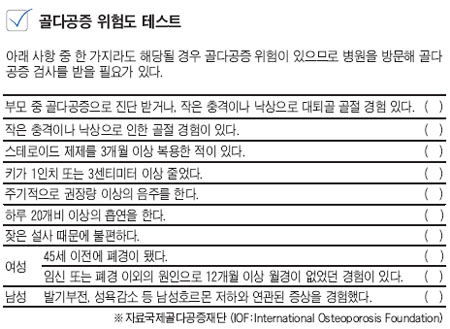 °ñ´Ù°øÁõ ¿¹¹æÀ» À§Çؼ± Àþ¾úÀ» ¶§ºÎÅÍ »À¸¦ °ü¸®ÇØ¾ß ÇÑ´Ù. °ñ¹Ðµµ´Â 20´ë±îÁö °è¼Ó Áõ°¡ÇØ 30´ë Á߹ݿ¡ ÃÖ°í¿¡ À̸£°í, ÀÌÈÄ °è¼Ó °¨¼ÒÇÑ´Ù. »ï¼º¼¿ïº´¿ø Á¤Çü¿Ü°ú ¼Àç°ï ±³¼ö´Â ¡°¿îµ¿°ú ¹Ù¸¥ ½Ä½À°üÀ¸·Î 20´ë¿¡ °ñ¹Ðµµ¸¦ ÃÖ´ëÇÑ ³ô¿© ³õ¾Æ¾ß Áß³â ÀÌÈÄ Æó°æÀ̳ª ½ºÅ×·ÎÀ̵åÁ¦ º¹¿ëÀ¸·Î ÀÎÇÑ °©ÀÛ½º·± °ñ¹Ðµµ ÀúÇÏ¿¡ ´ëºñÇÒ ¼ö ÀÖ´Ù¡±°í ¸»Çß´Ù.