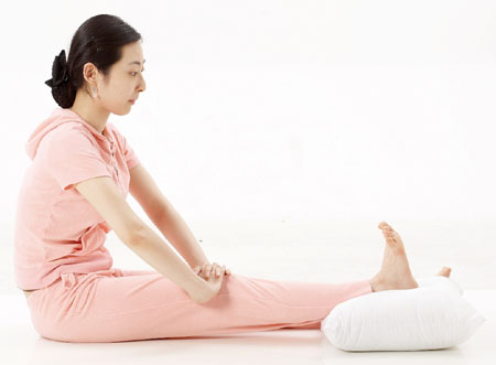 ¡ã¹«¸ ¨çÀÇÀÚ¿¡ ÆíÇÏ°Ô ¾É¾Æ ÇÑÂÊ´Ù¸®¸¦ 90µµ·Î µé¾î¿Ã¸®°í ¹«¸À» ÃÖ´ëÇÑ Æí´Ù. À̶§ ¹ß¸ñÀ» ÃÖ´ëÇÑ À§·Î Á¥Èù´Ù. ¾à 10Ãʰ£ ¸ØÃá µÚ ´Ù¸®¸¦ õõÈ÷ ³»¸°´Ù. ¨èº£°³³ª Äí¼Ç À§¿¡ ´Ù¸®¸¦ ¿Ã¸° ÈÄ ¹«¸ ¾à°£ ÀºÎºÐÀ» µÎ ¼ÕÀ¸·Î ÃæºÐÈ÷ ´·¯ÁØ´Ù. ¹«¸ ÅëÁõ¿¡ È¿°ú°¡ ÀÖ´Ù.