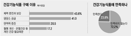 Çѱ¹º¸°Ç»ê¾÷ÁøÈï¿ø ½Äǰ»ç¾÷´ÜÀÌ ÀÛ³â 9¿ù ¼¿ï°ú ¼öµµ±ÇÀÇ ¼ºÀÎ ³²³à 400¸íÀ» ´ë»óÀ¸·Î ½Ç½ÃÇÑ '°Ç°±â´É½Äǰ¿¡ ´ëÇÑ ¼ÒºñÀÚ ÀÎ½Ä ¹× ÀÌ¿ë½ÇÅÂÁ¶»ç' °á°ú, °Ç°½Äǰ ±¸ÀÔ ÀÌÀ¯¿Í °ü·ÃÇØ¼± 'ü·Â ÁõÁø°ú º¸°(43.6%)'À̶õ ÀÀ´äÀÌ °¡Àå ¸¹¾Ò°í '¿µ¾ç¼Ò °ø±Þ(41%)' '¸é¿ª·Â ÁõÁø(20.5%)' 'ÀÚ½ÅÀÇ °Ç°»óÅ¿¡ µû¶ó ¼¼ºÐÈµÈ Á¦Ç° ±¸¸Å(17.2%)' µîÀÇ ¼øÀ̾ú´Ù.