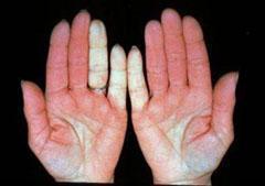 ¡æ ÃßÀ§¿¡ ³ëÃâµÇ°Å³ª Á¤½ÅÀûÀÎ ½ºÆ®·¹½º µî¿¡ ÀÇÇØ¼ Ç÷°üÀÌ °úµµÇÏ°Ô ¼öÃàµÅ ¼Õ, ¹ß µîÀÇ »öÀÌ ÇϾé°Ô µÆ´Ù°¡ ½Ã°£ÀÌ Áö³ª¸é¼ ÆÄ¶õ»öÀ¸·Î º¯Çϰí, ´Ù½Ã µû¶æÇÑ °÷À¸·Î µ¹¾Æ¿ÔÀ» ¶§´Â Ç÷°ü È®ÀåÀ¸·Î ºÓ°Ô º¯ÇÏ¸é¼ ÅëÁõÀÌ µ¿¹ÝµÇ´Â Áúȯ