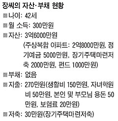 Q °æ±âµµ ¼º³²½Ã¿¡ °ÅÁÖÇÏ´Â Àå¸ð(42)¾¾´Â ÀÚ³à µÑÀ» µÐ Áß¼Ò±â¾÷ ºÎÀåÀ¸·Î, 2004³â¿¡ ºÐ¾ç ¹ÞÀº Áß¼ÒÇü ÁÖ»óº¹ÇÕ ¾ÆÆÄÆ®¿¡ »ì°í ÀÖ´Ù. Áý°ªÀÌ ÆøµîÇÏ´ø ¶§¿¡µµ Àå¾¾ ¾ÆÆÄÆ®´Â ½Ã¼¼°¡ ¸¹ÀÌ ¿À¸£Áö ¾Ê¾Ò´Ù. ±×·¡¼ °ÅÁÖ ¸ñÀû°ú ÅõÀÚ ¸ñÀûÀ» ¸ðµÎ ÃæÁ·½Ãų ¼ö ÀÖ´Â °÷À¸·Î À̻縦 °¡·ÁÇÑ´Ù. Àå¾¾ÀÇ ±ÝÀ¶ÀÚ»êÀº Á¤±â¿¹±Ý 5000¸¸¿ø, Àå±âÁÖÅø¶·ÃÀúÃà 2000¸¸¿ø, ÆÝµå 1000¸¸¿øÀÌ¸ç ºÎä´Â ¾ø´Ù.